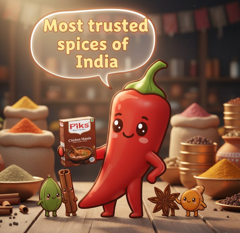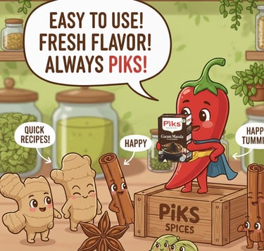 PIKS is one of India's most trusted spice brands, built on a steadfast commitment to quality, authenticity, and consistency. We directly source spices from the best regions, such as turmeric from Selam and cumin from Gujarat, ensuring purity and freedom from additives through strict quality control. PIKS is dedicated to preserving the natural taste and aroma across its wide range of whole, ground, and blended masalas, offering reliable, authentic flavor for every Indian home. Additionally, we support ethical sourcing and sustainable practices, making PIKS a brand that stands for tradition, taste, and quality you can count on.