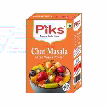 Add a pinch of PIKS CHAT MASALA to your meals with our aromatic chat masala blend. A unique combination of spices that brings out the best flavors. Perfect for snacks, street food, and Indian cuisine.