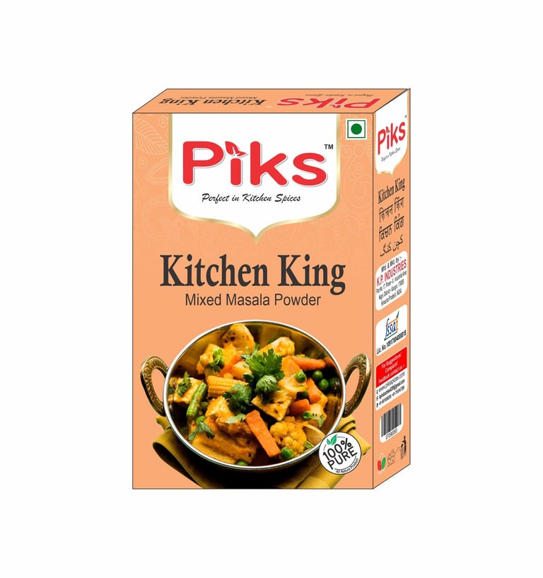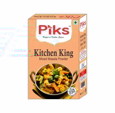 Unlock the secret to flavorful Indian cuisine with our PIKS KITCHEN KING MASALA. A master blend of spices that elevates every dish with its rich, aromatic flavor. Perfect for adding depth and warmth to your everyday cooking.