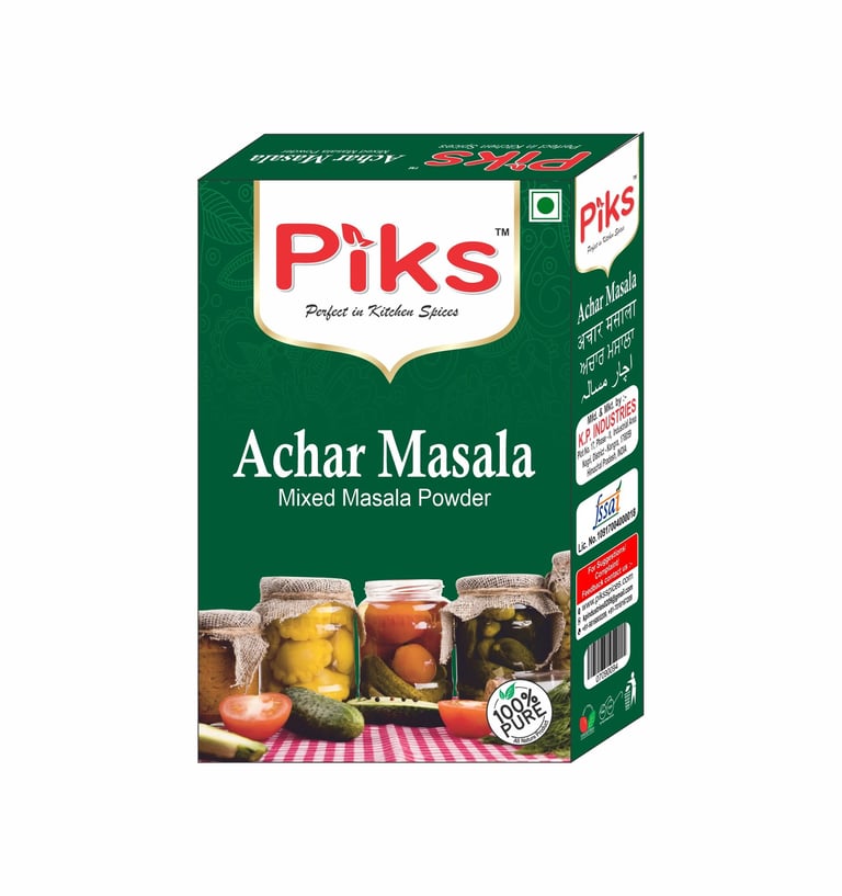 Elevate your homemade pickles and preserves with the tangy, spicy flavor of our PIKS ACHAR MASALA. A carefully crafted blend of spices that adds depth and authenticity to traditional Indian achar recipes. Perfect for adding a burst of flavor to vegetables, fruits, and more.