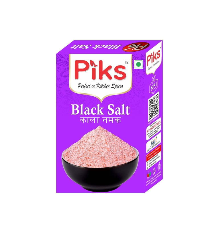 PIKS Black Salt is a natural, tangy seasoning that enhances flavours with its unique aroma and taste. Perfect for chaats, salads, fruits, and beverages, it adds an authentic zesty touch to every dish.