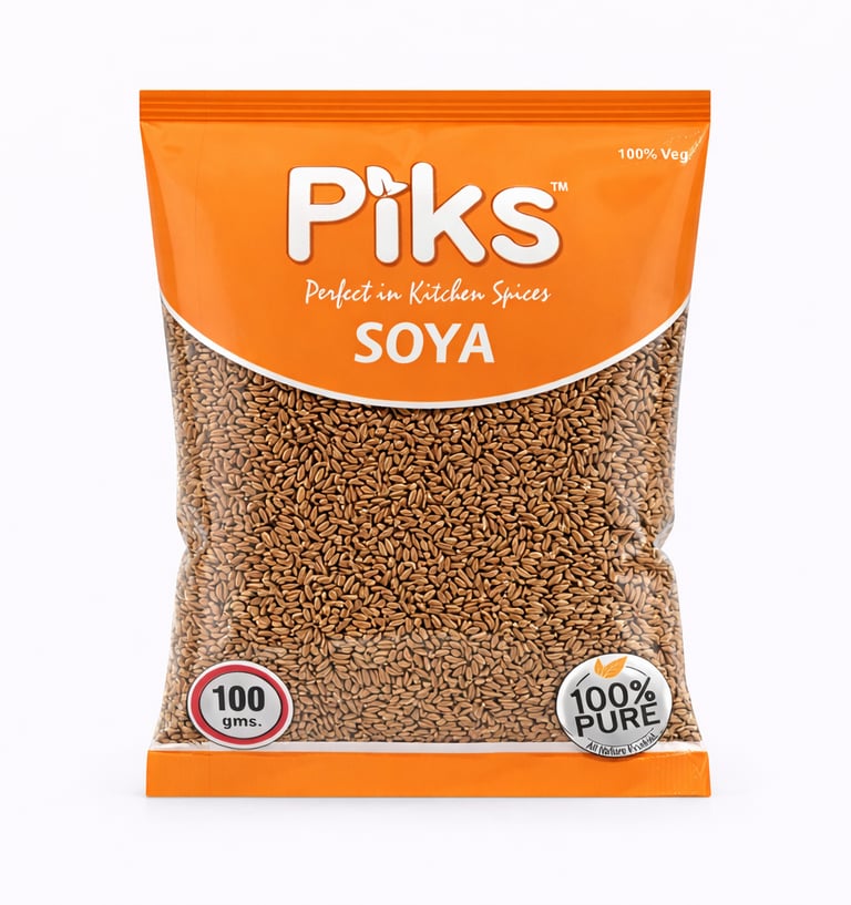 PIKS Soya Seeds are aromatic and flavorful, offering a warm, slightly sweet taste with hints of caraway and anise. Ideal for pickling, seasoning fish and lentil dishes, or adding depth to breads and stews, they are a versatile spice in Indian and global cuisines.