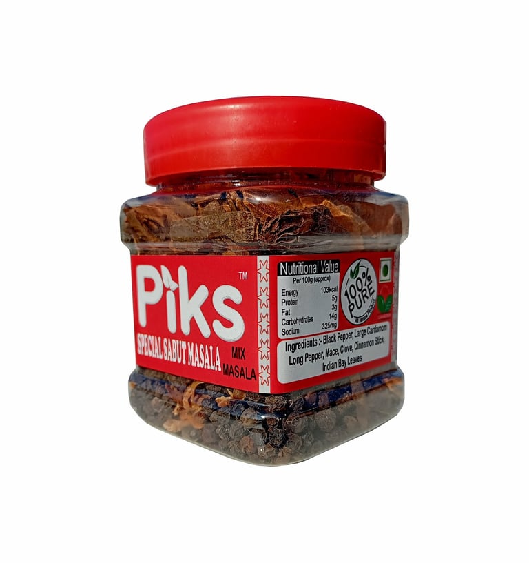 Experience the ultimate blend of whole spices with our PIKS SABUT MASALA JAR. This expertly crafted mix adds a rich, aromatic flavor to curries, stews, and traditional recipes. Elevate your cooking with the perfect balance of spices for authentic taste.