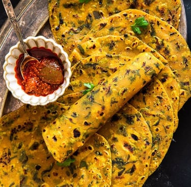 ๐ฟ Soft, aromatic, and full of traditional flavour! Authentic Gujarati Methi Thepla is a beloved flatbread made with fresh fenugreek leaves, whole wheat flour, and gentle spices โจ๐ฑ. Light yet satisfying, these theplas are perfect for breakfast, lunchboxes, or travel snacks ๐๐ฅฃ. Their slightly spiced, earthy taste pairs beautifully with curd, pickle, or a hot cup of chai โ, making them a comforting staple in every Gujarati home ๐.