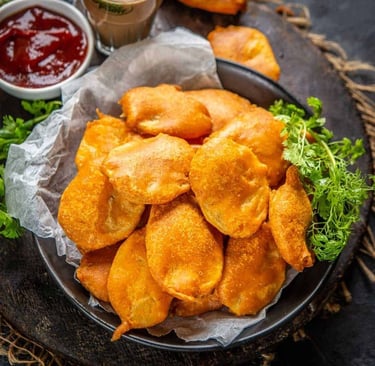 ๐ฅ๐ฅ Crispy, golden, and irresistibly delicious! Aloo Pakora, also known as Potato Bajji, is a much-loved Indian snack made with thinly sliced potatoes dipped in a spiced chickpea flour batter and deep-fried to perfection ๐. Crunchy on the outside and soft on the inside, these pakoras are quick to make and incredibly satisfying. Best enjoyed hot with fresh green chutney ๐ฟ and a steaming cup of masala chai โ, theyโre perfect for rainy evenings, tea-time cravings, or a simple comfort snack.