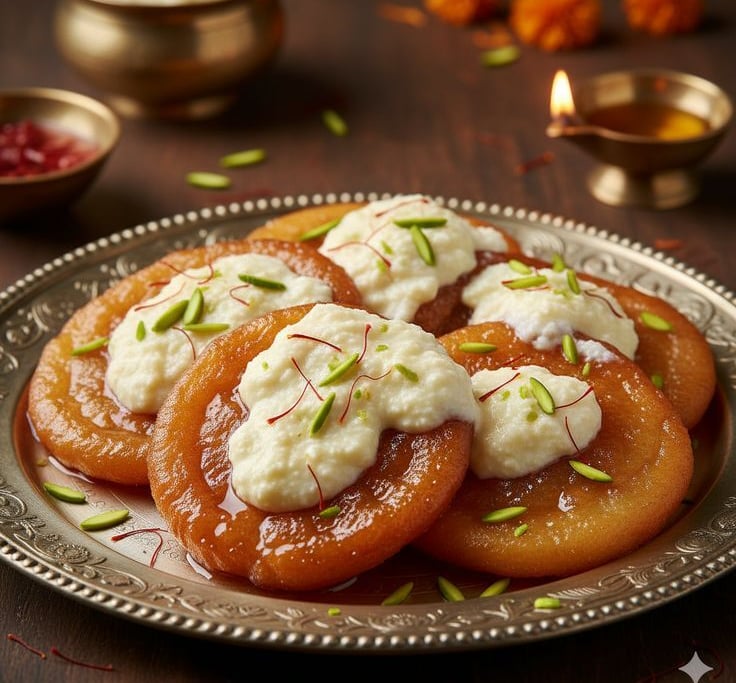 ๐ฏ๐ Royal Rabri Malpua โ A Traditional Indian Festive Delight Featuring Golden, Syrup-Soaked Malpuas Topped with Luxuriously Rich & Creamy Rabri โจ๐ฅ๐ธ