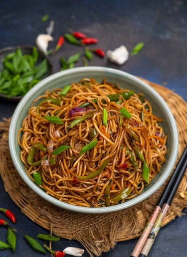 Sizzling garlic ๐ง, fiery chilli ๐ถ๏ธ, and perfectly tossed noodles ๐โจ โ bold flavours, street-style vibes, and pure comfort in every bite ๐โค๏ธ.