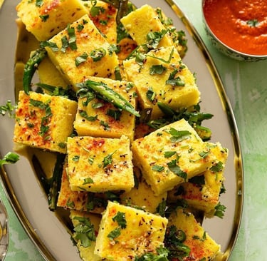 Soft, airy, and melt-in-the-mouth dhokla ๐โจ steamed to perfection and topped with a fragrant mustard seed tempering, green chillies, and fresh coriander ๐ฟ๐ถ๏ธ. Light, healthy, and beautifully balanced with a hint of tang ๐๐ โ this Gujarati classic is perfect for breakfast, tea-time, or anytime cravings โค๏ธ